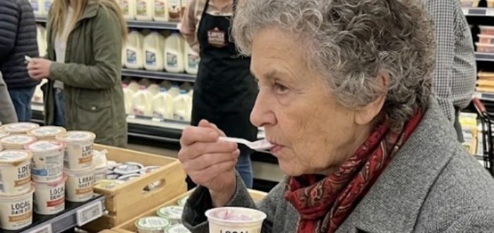 Tisti dan je bila trgovina skoraj prazna in le nadzorne kamere so zaznale, kako je ženska v temnem plašču in rdečem šalu počasi šla do police z jogurti.