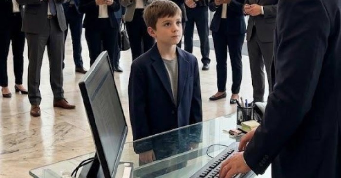 Deček je stopil majhen korak naprej. Mirno. Zanesljivo. Kot da ga nič od tega ni presenetilo.