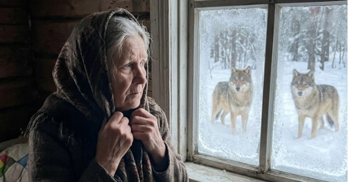 Stara ženska je že mnogo let živela v tej odročni pokrajini. Doživela je snežne viharje, ki so lomili drevesa, in celo videla medvede, ki so se približali do lope. Toda česa takega še nikoli ni doživela. Volkovi niso odšli. Zjutraj so še vedno stali tam. Podnevi so ostajali neposredno pri koči. Ponoči so se celo še bolj približali vratom.