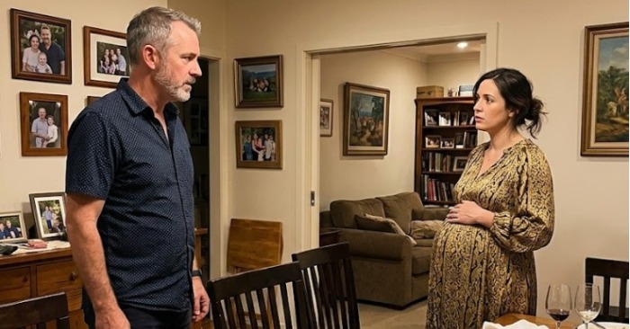Pogledal je po gostih, počasi, od obraza do obraza. »Seznam želja je predlog. Ne ukaz in ne preizkus zvestobe. In če misliš, da se materinstvo vrti okoli luksuznih predmetov namesto okoli ljubezni in žrtvovanja, potem me skrbi za tega otroka, ki ga pričakuješ.«