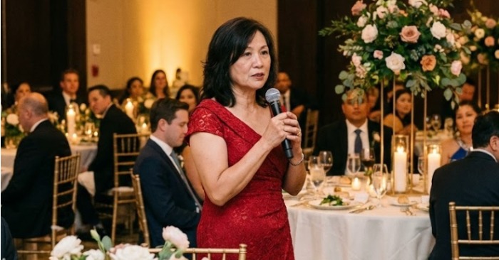 Liliana, moja bodoča tašča, je počasi vstala. Njen obraz je bil neberljiv, ko se je obrnila proti dvorani. Prostor je utihnil.