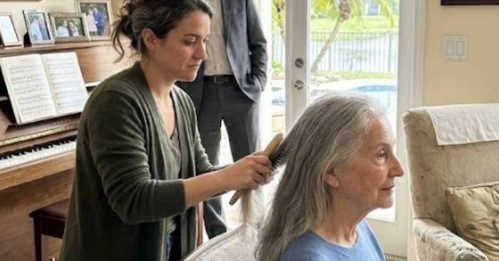 Rosa je čisto nežno dvignila roko in začela z neskončno potrpežljivostjo razvozlavati lase milijonarke. Vsak gib je bil kot ljubkovanje, kot tiho vračanje tistega dostojanstva, ki so ji ga vsi drugi že davno vzeli. Alejandro je začutil kepo v grlu, ko je videl, kako so se ramena njegove matere prvič po mesecih sprostila. Rosa ji je začela plesti kito, Doña Elena pa je zaprla oči in izpustila tih vzdih miru.
