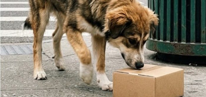Poteptujoči pes je obupano praskal škatlo, in mimoidoči so začeli bolje gledati šele, ko je začel vzdihovati – zvok, ki je skoraj zvenel kot človeški jok. Ni prenehal