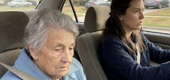 Starejša ženska je sedela čisto ob robu na hladni plastični klopi in trdno držala staro rjavo torbo. Njen plašč je bil veliko pretanek za vreme, šal obrabljen, njeni