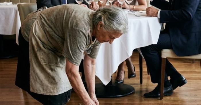 „Poglejte njene čevlje. Skoraj se podirajo! Kdo pa zaposli nekoga takega v takem prestižnem lokalu?“