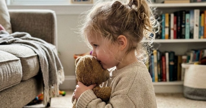 Moja majhna hči je držala svojega medvedka v naročju, kot da bi bil varuh skrivnosti. Njeno drobno čelo je bilo zbrano nagubano. V tistem trenutku je bila videti tako resna in tako odrasla, da me je bilo strah.