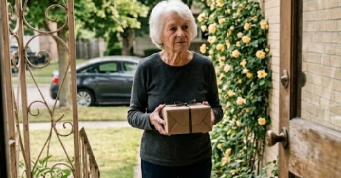 Ni niti potrkala, ni poklicala, niti osebno ni čestitala. Preprosto je odložila darilo in spet odšla. Kamera pri vhodu je kasneje pokazala, da je tam stala komaj minuto – ozrla se je okoli, odložila škatlo in skoraj naglo odšla, kot da bi se bala ostati še sekundo dlje.